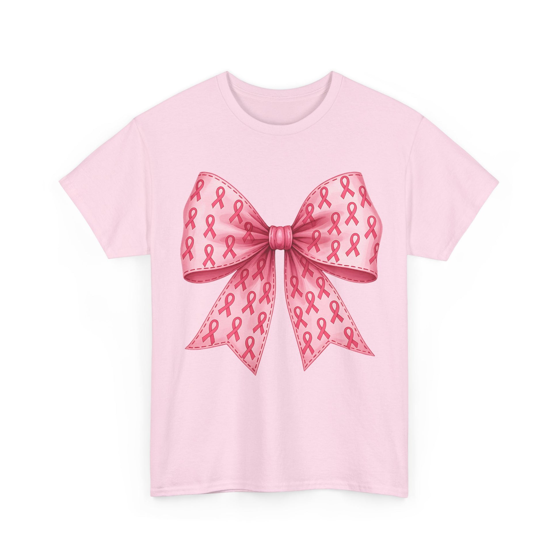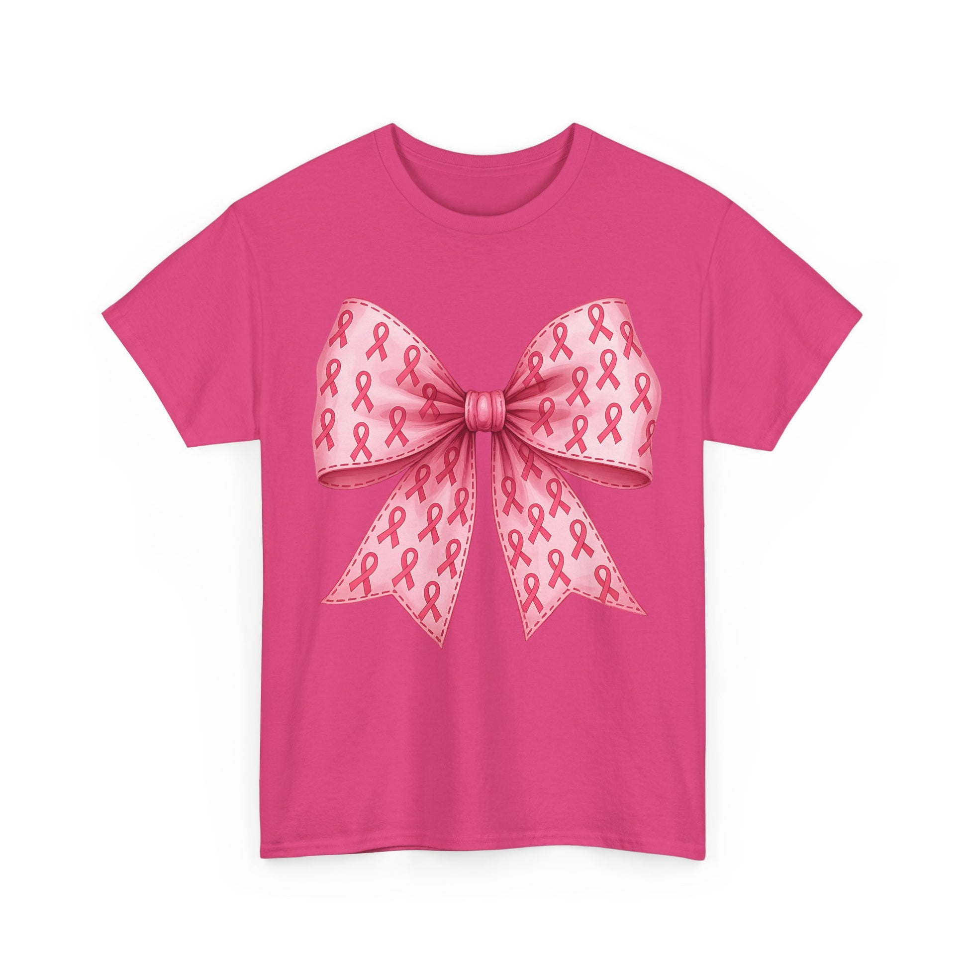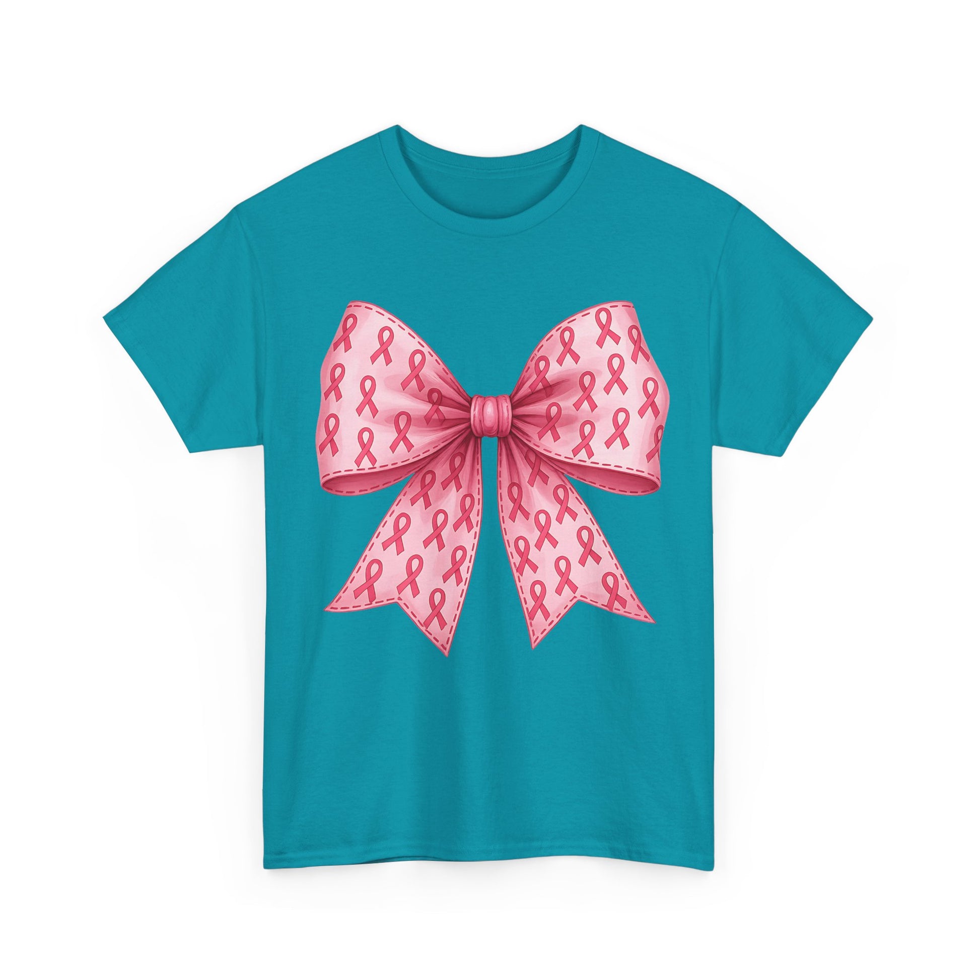 This Breast Cancer Bow Tee gives off a supportive and uplifting vibe, making it a perfect choice for those looking to raise awareness or show solidarity for breast cancer fighters and survivors. It can be worn casually or dressed up, making it versatile for everyday wear or special occasions. A thoughtful gift for friends, family, or colleagues affected by breast cancer. Relevant for Breast Cancer Awareness Month, cancer fundraisers, charity events, or simply for spreading positivity and hope.