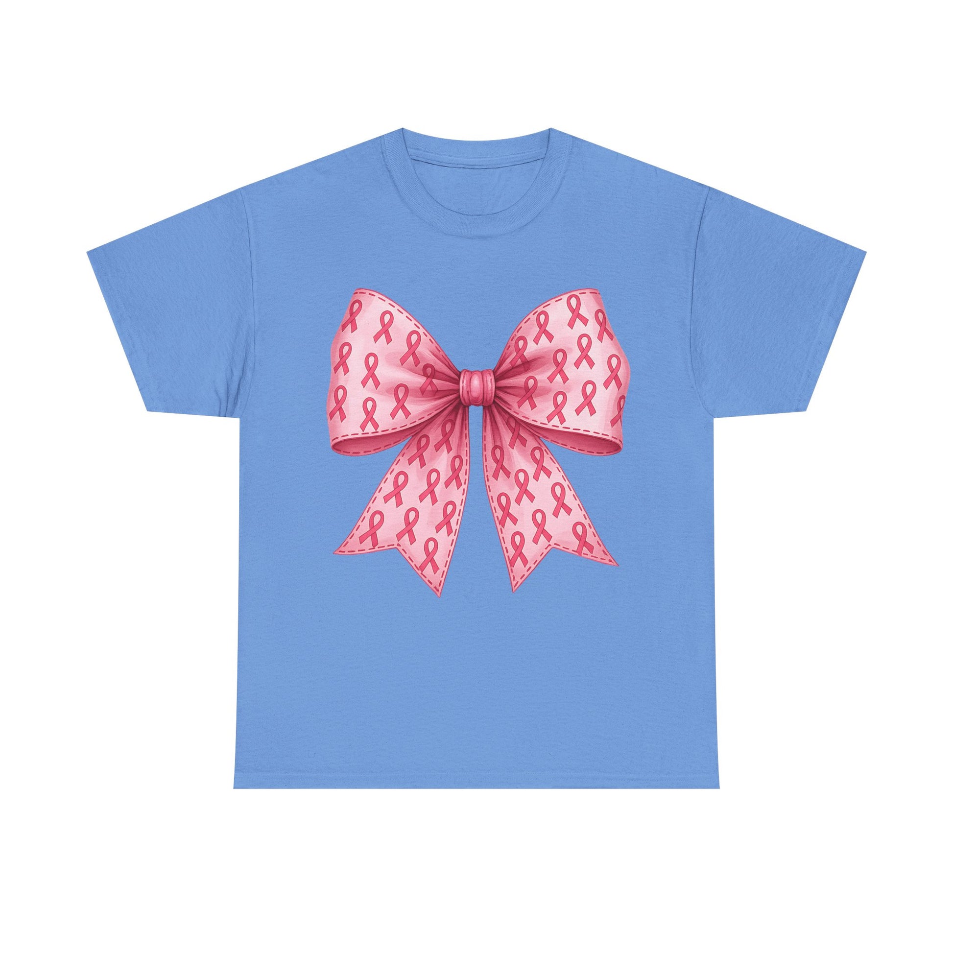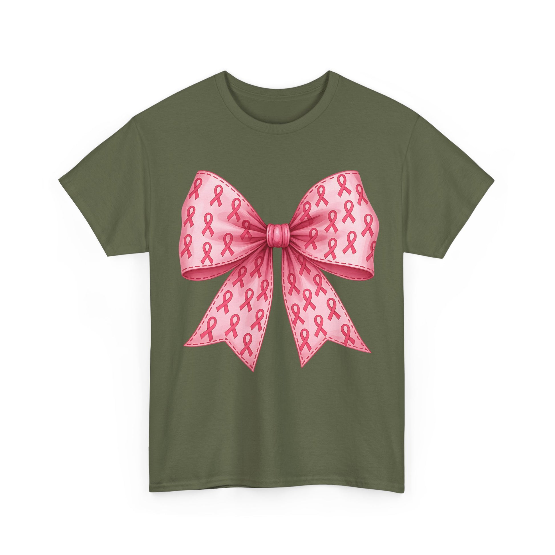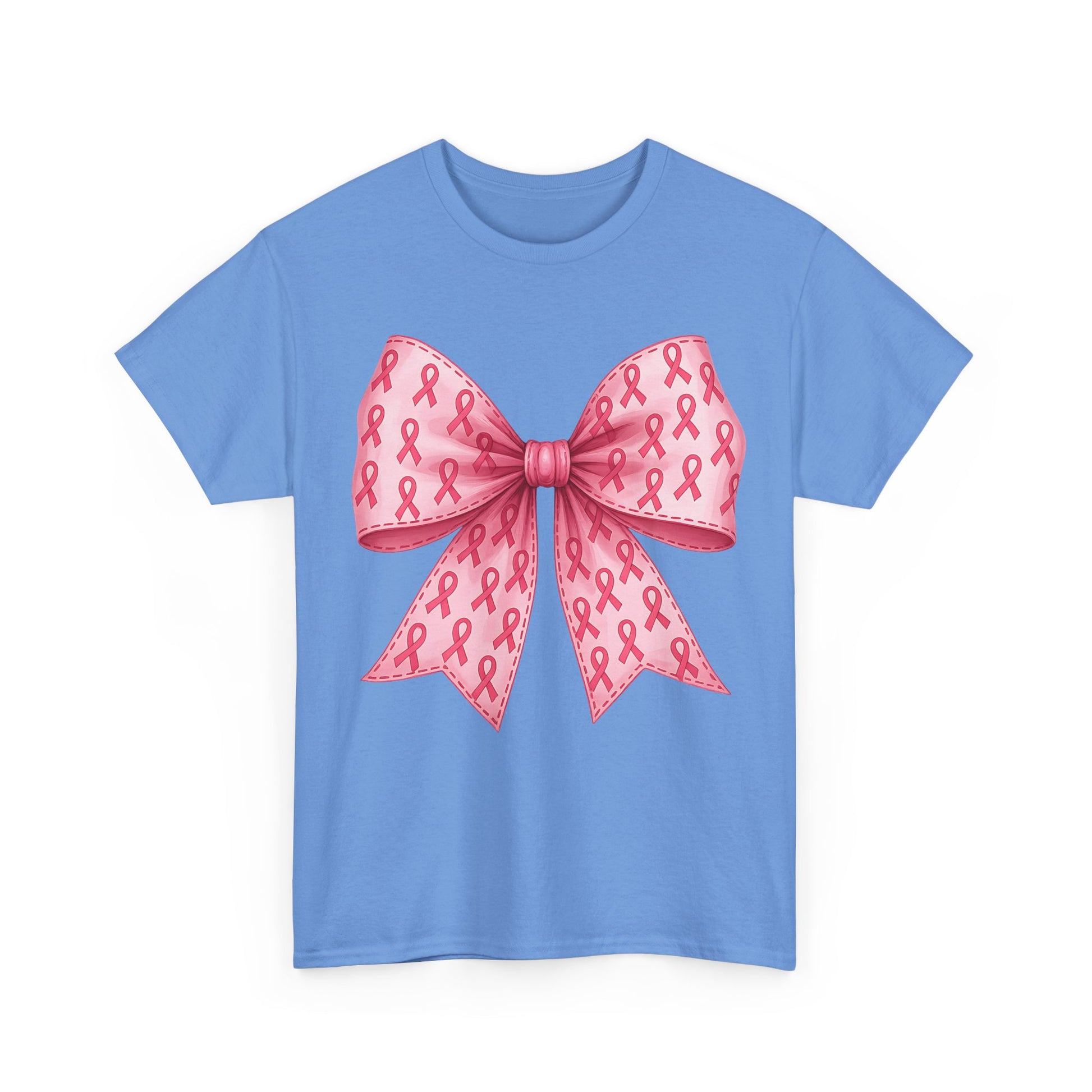 This Breast Cancer Bow Tee gives off a supportive and uplifting vibe, making it a perfect choice for those looking to raise awareness or show solidarity for breast cancer fighters and survivors. It can be worn casually or dressed up, making it versatile for everyday wear or special occasions. A thoughtful gift for friends, family, or colleagues affected by breast cancer. Relevant for Breast Cancer Awareness Month, cancer fundraisers, charity events, or simply for spreading positivity and hope.