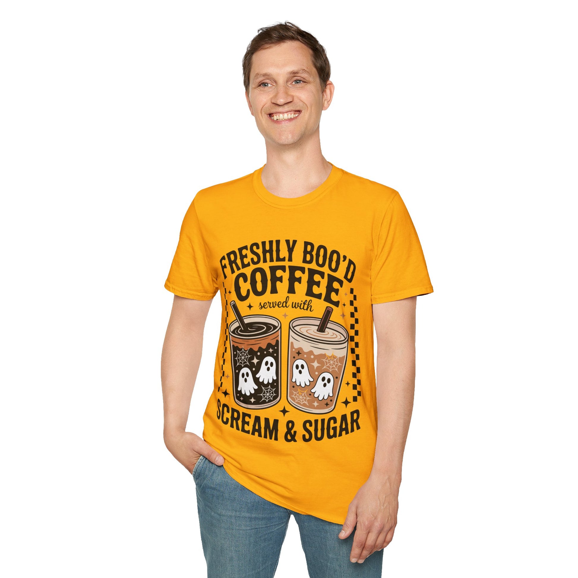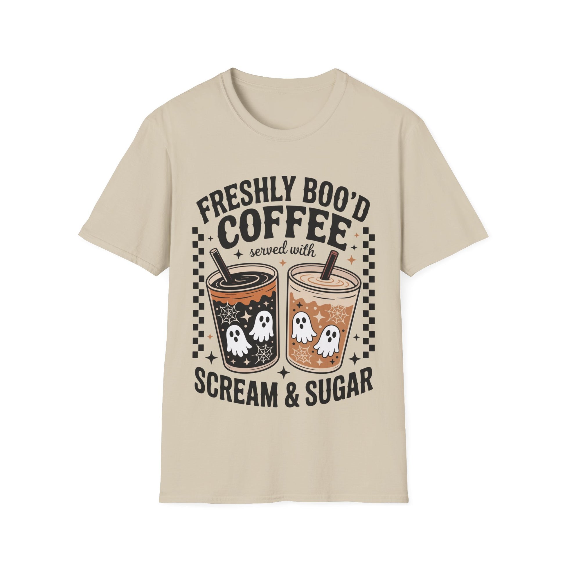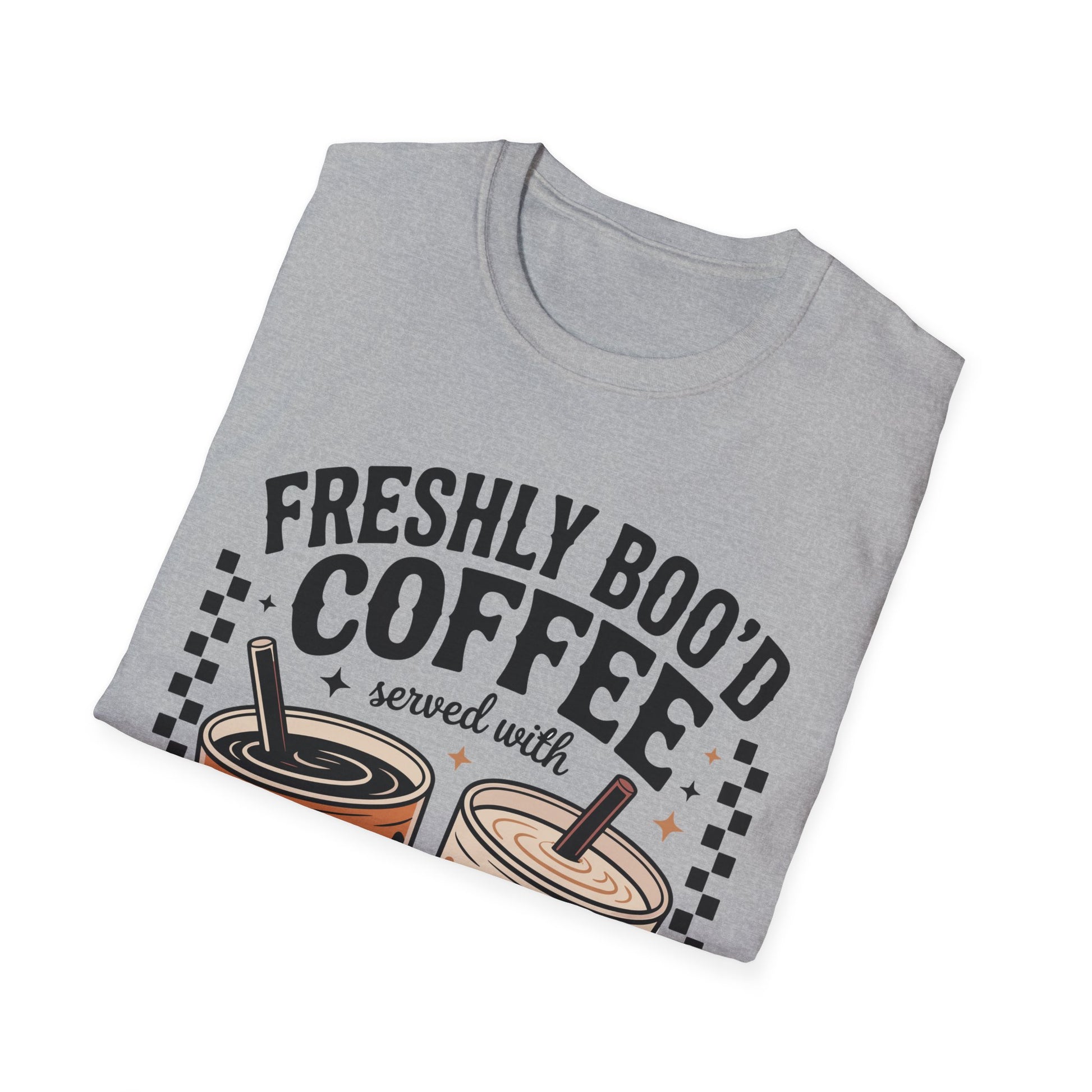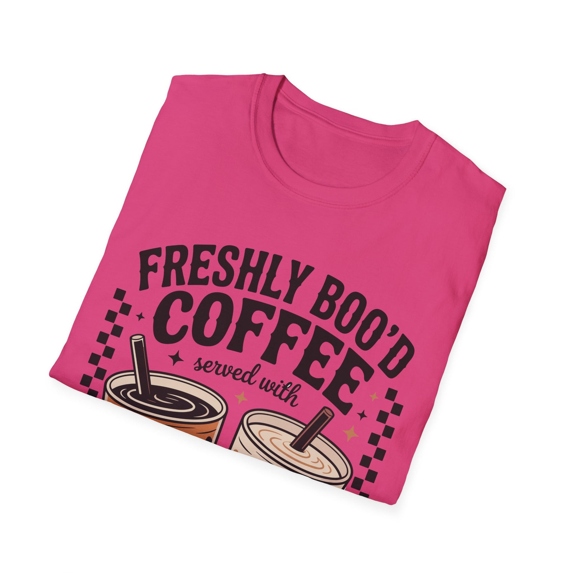 This Freshley Boo'd Coffee T-Shirt exudes a cozy and trendy vibe, perfect for casual outings or chilling at home. Ideal for coffee lovers and those who enjoy a laid-back style. Perfect for Halloween and fall season enthusiasts.