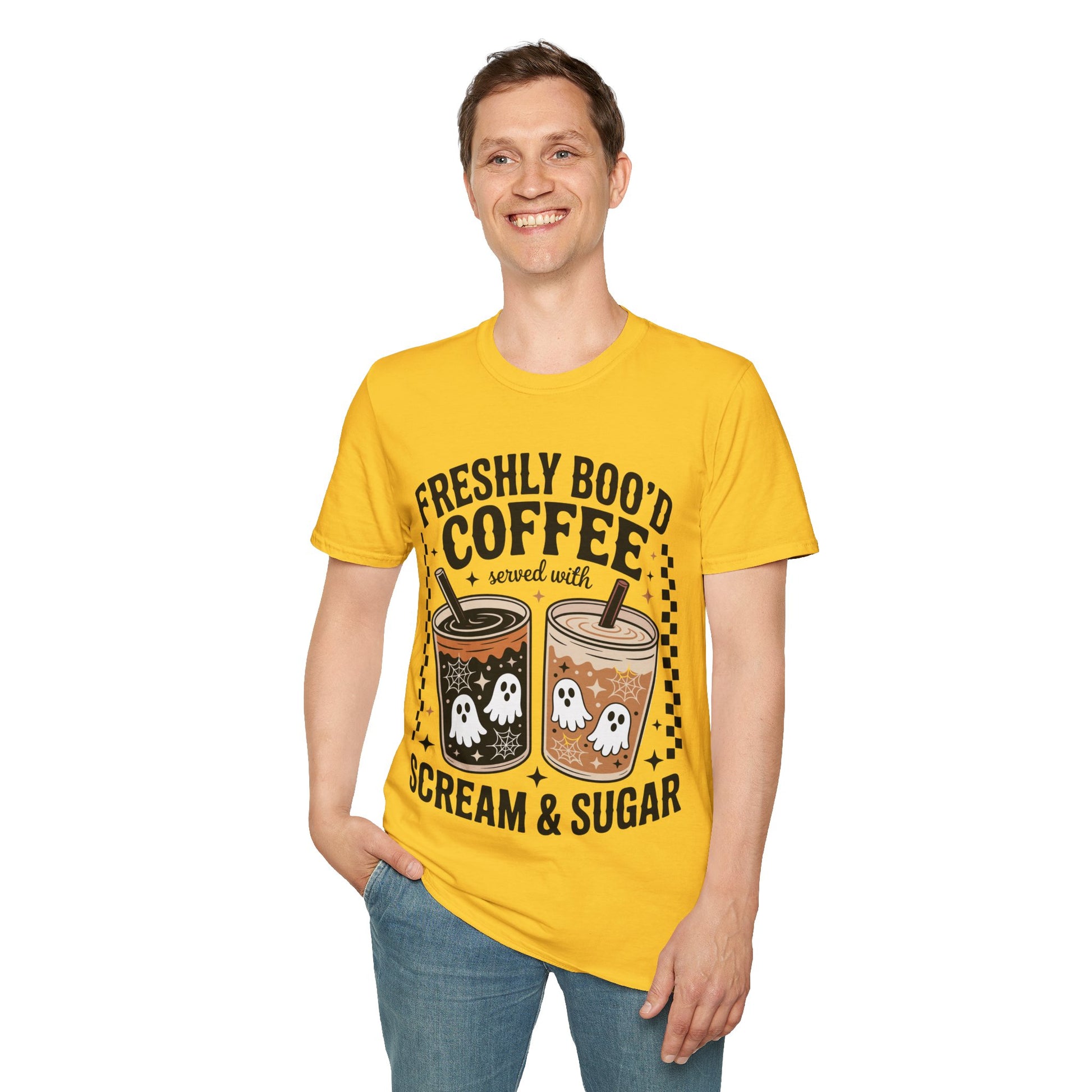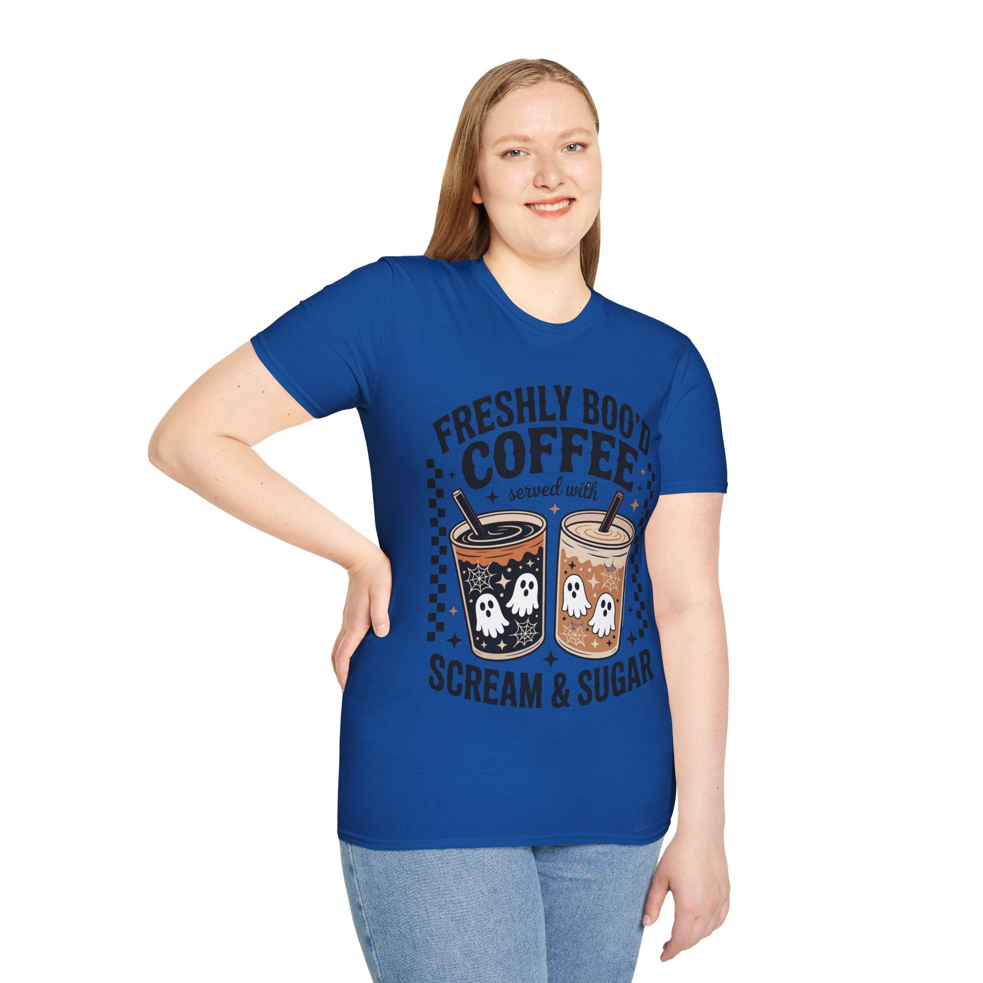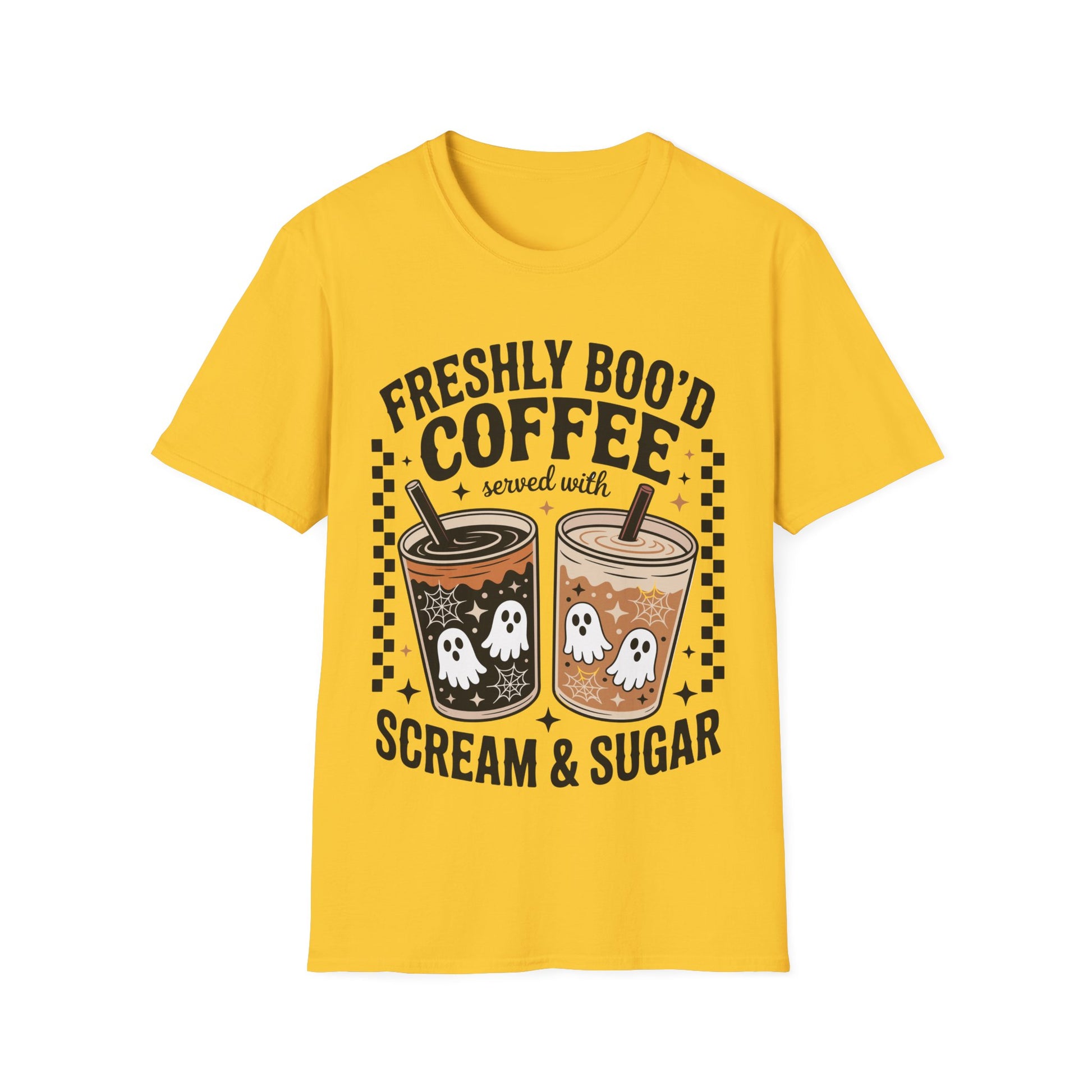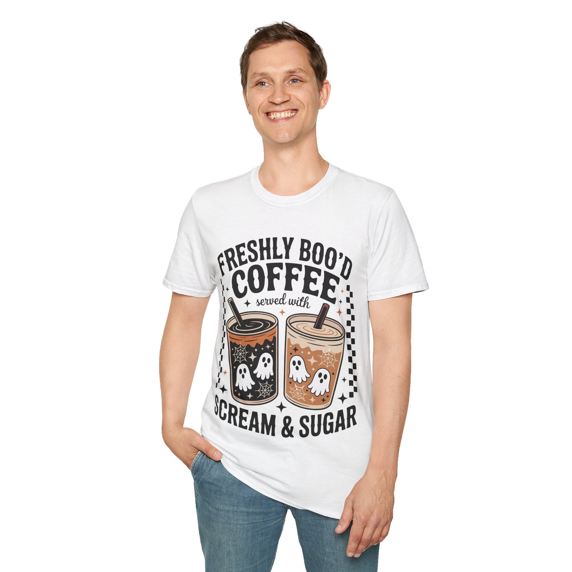This Freshley Boo'd Coffee T-Shirt exudes a cozy and trendy vibe, perfect for casual outings or chilling at home. Ideal for coffee lovers and those who enjoy a laid-back style. Perfect for Halloween and fall season enthusiasts.