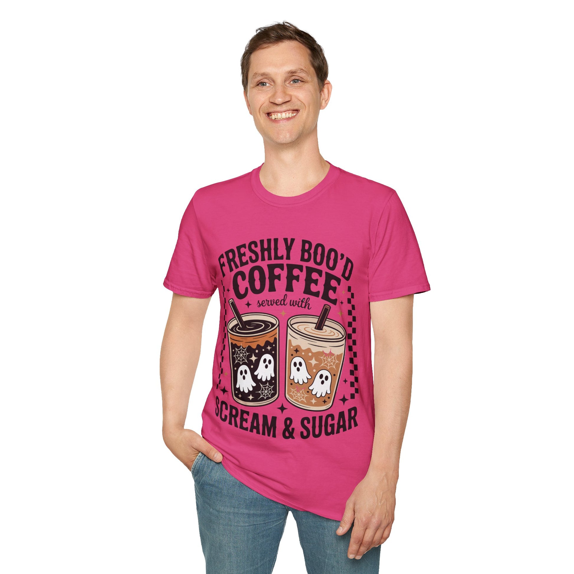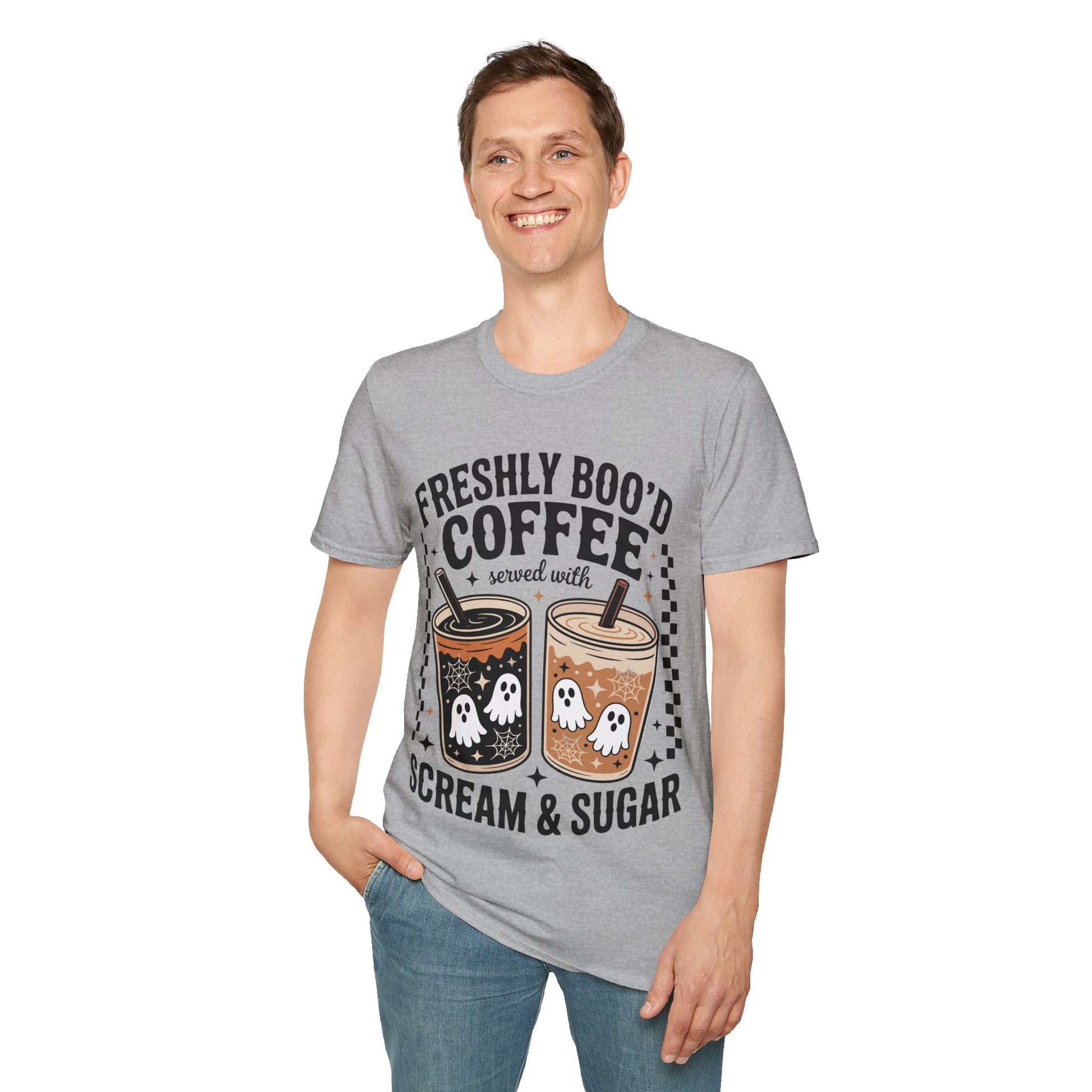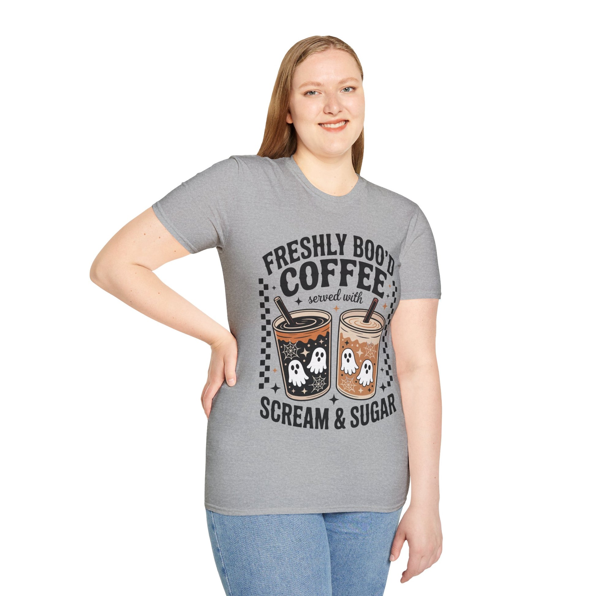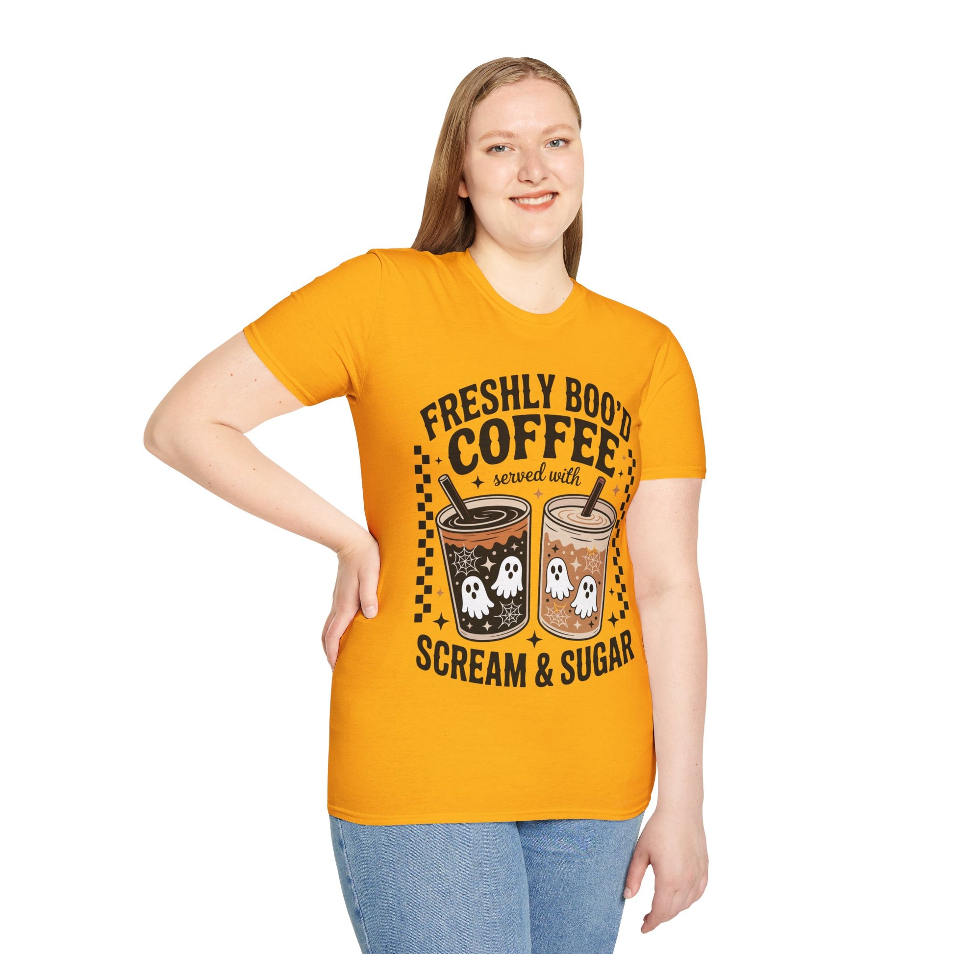 This Freshley Boo'd Coffee T-Shirt exudes a cozy and trendy vibe, perfect for casual outings or chilling at home. Ideal for coffee lovers and those who enjoy a laid-back style. Perfect for Halloween and fall season enthusiasts.