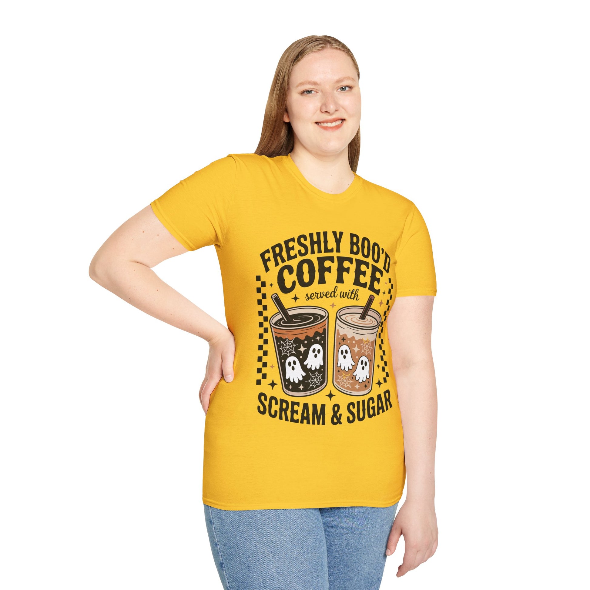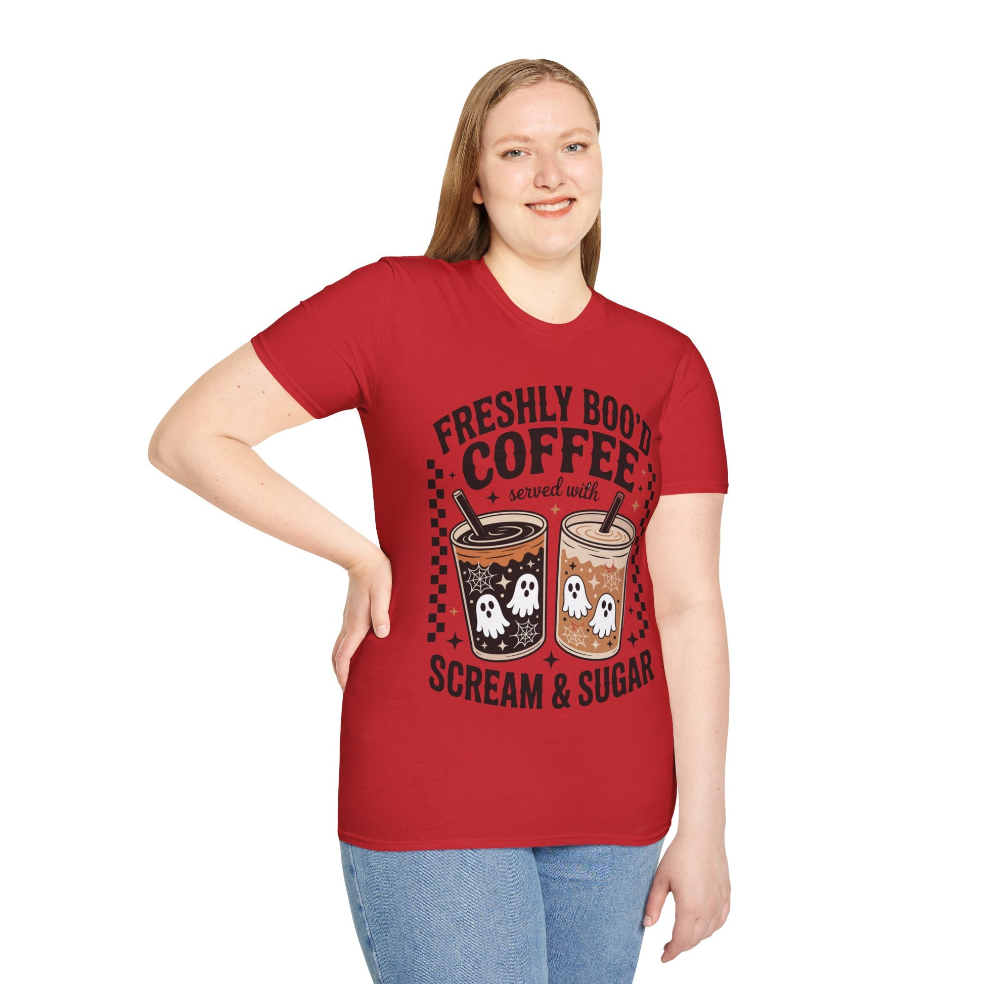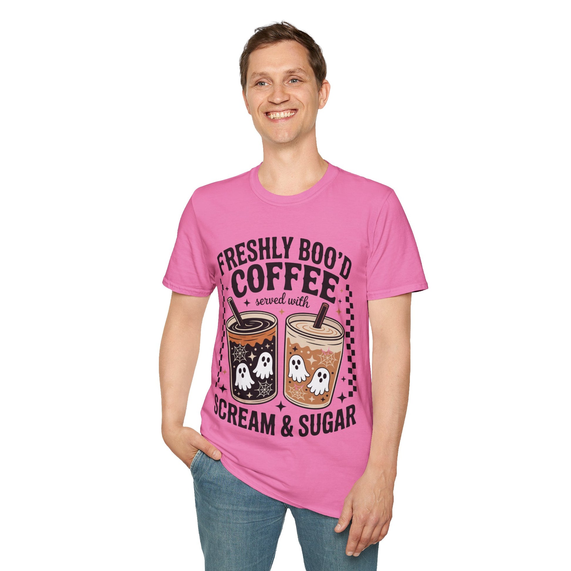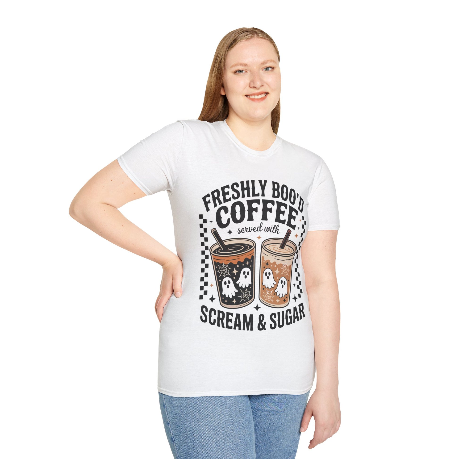 This Freshley Boo'd Coffee T-Shirt exudes a cozy and trendy vibe, perfect for casual outings or chilling at home. Ideal for coffee lovers and those who enjoy a laid-back style. Perfect for Halloween and fall season enthusiasts.