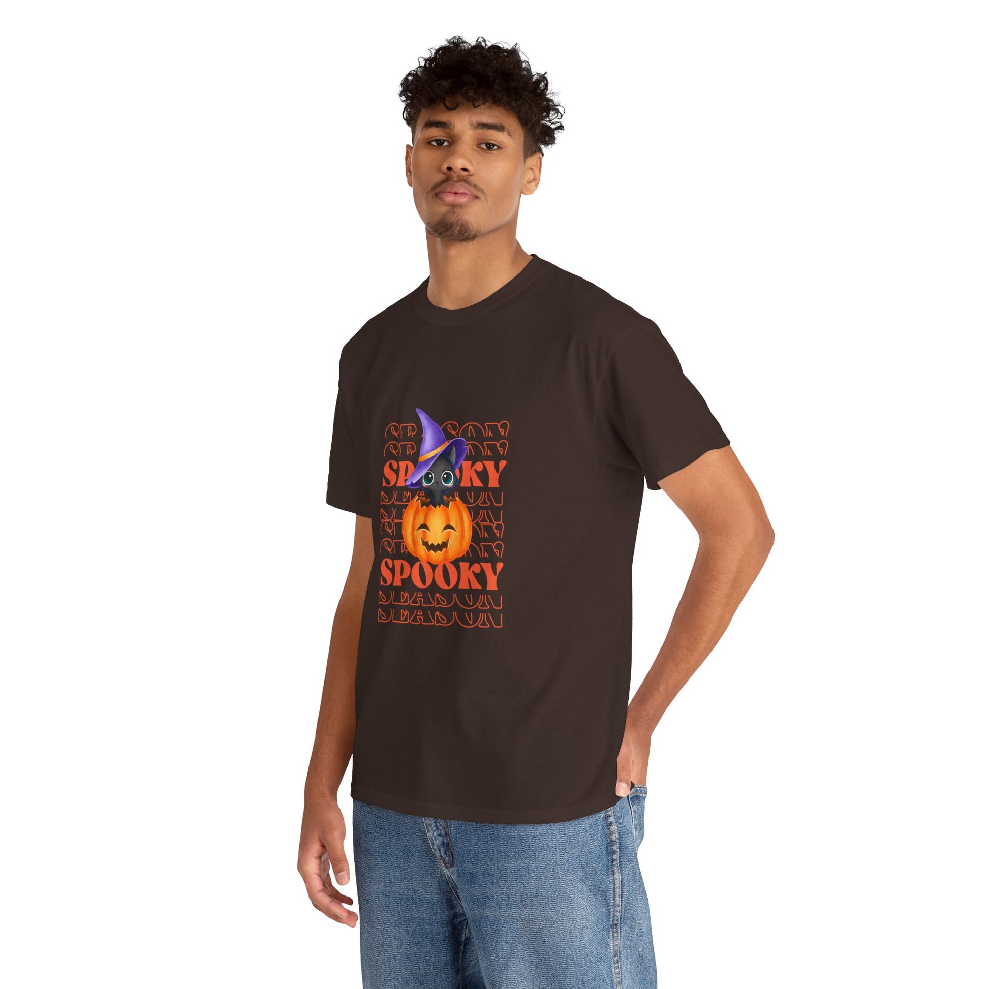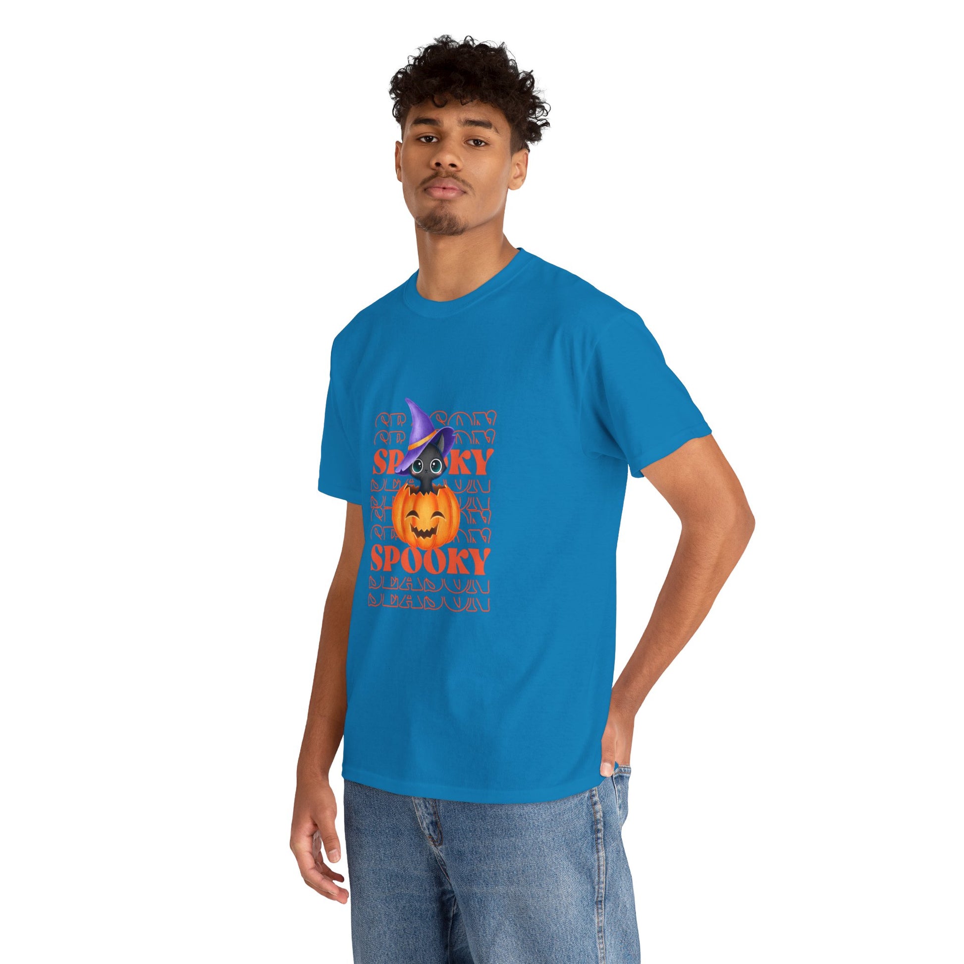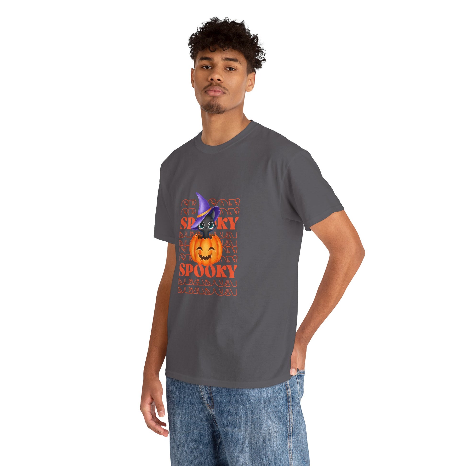 Embrace the spirit of the season with this Unisex Heavy Cotton Tee, designed to bring a touch of fun and festivity to your wardrobe. Featuring a vibrant Halloween-themed print, this shirt is perfect for those who love to celebrate in style. Its classic fit offers comfort for all-day wear, whether you're attending Halloween parties, trick-or-treating, or enjoying cozy nights with friends. Ideal for adults looking to express their love for the spooky season, this tee enhances any casual outfit. Wear it proudly during the autumn celebrations, Halloween events, or just for a fun day out!
