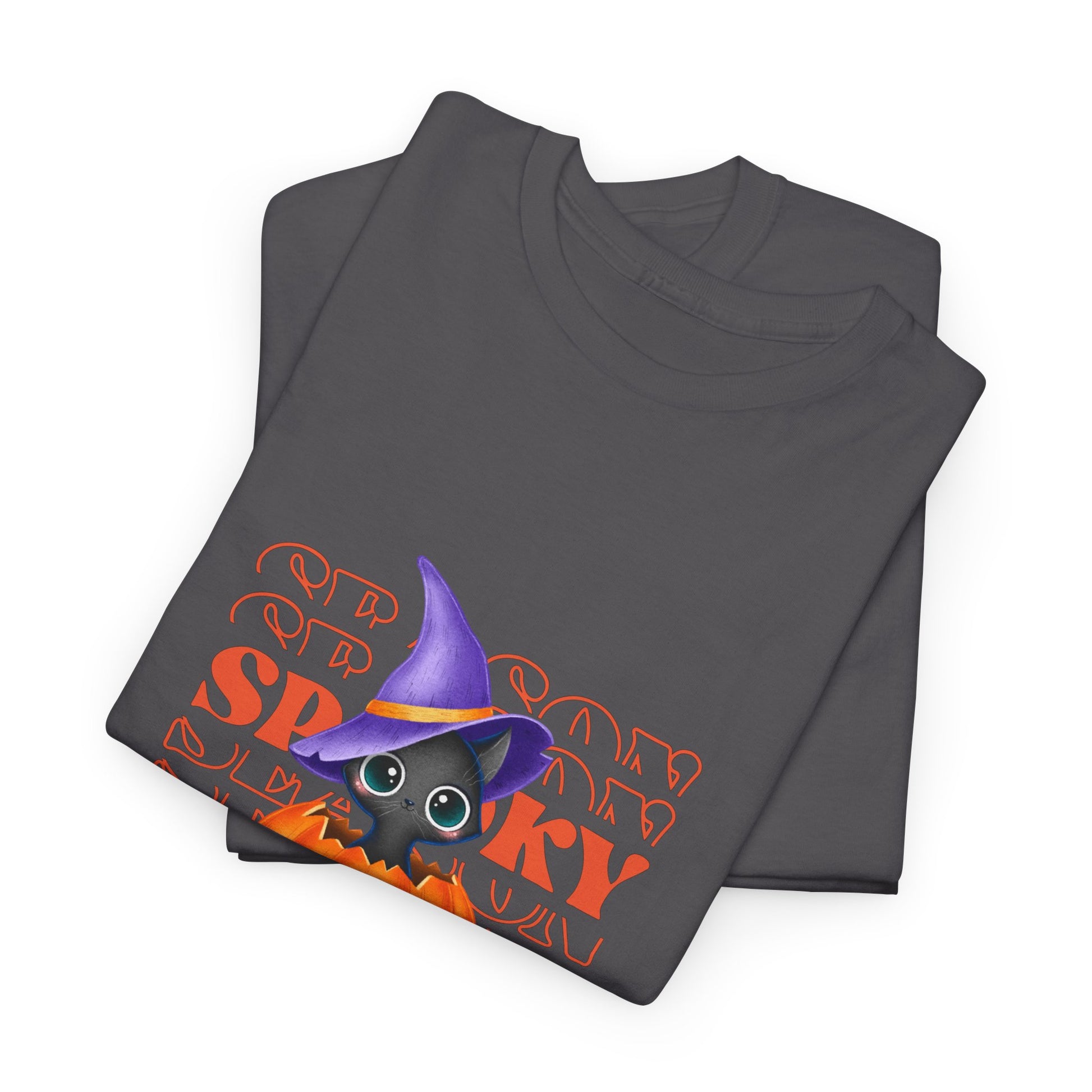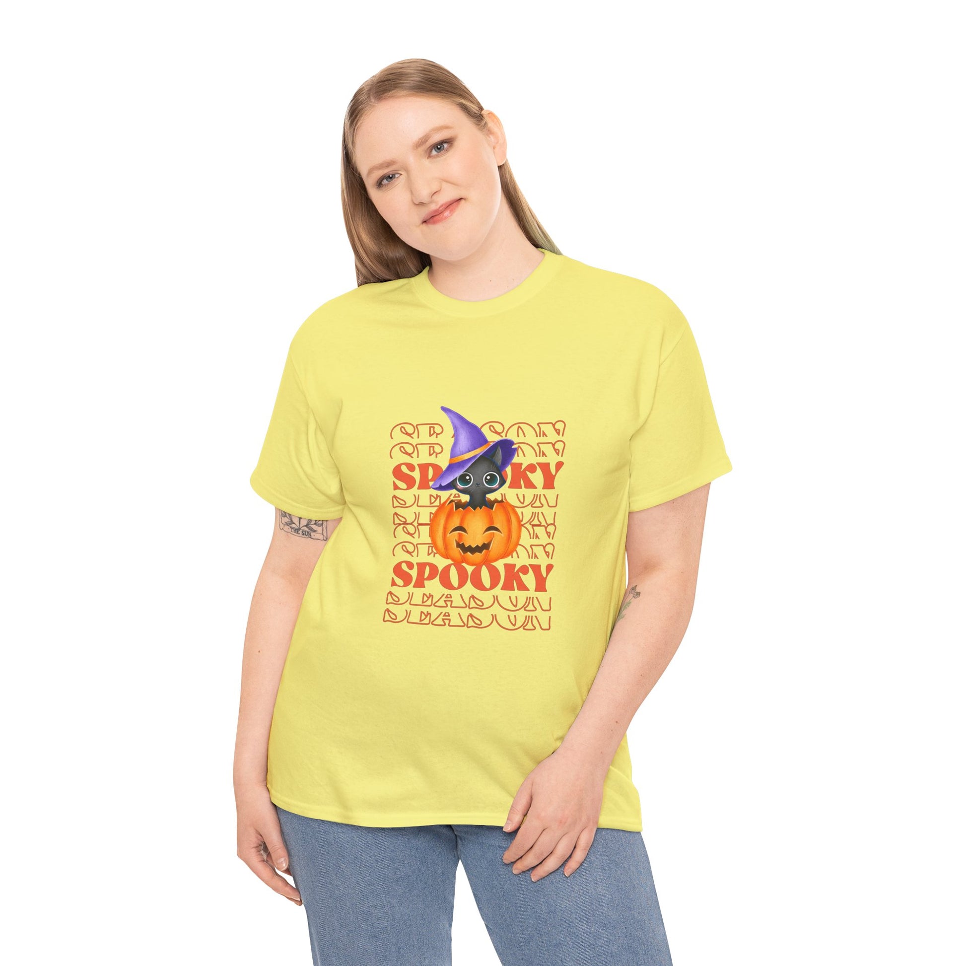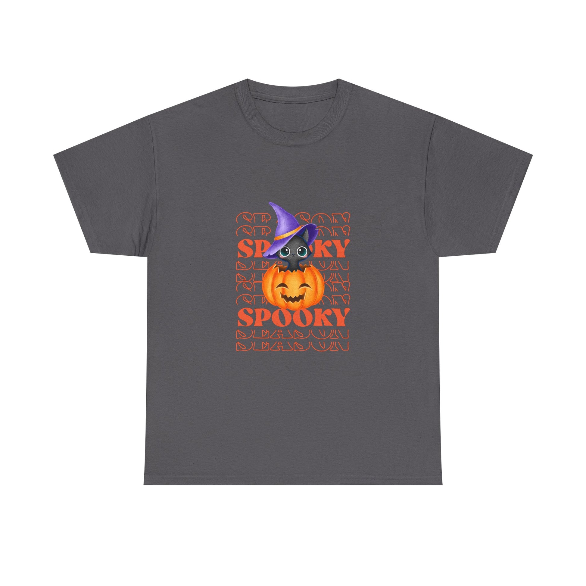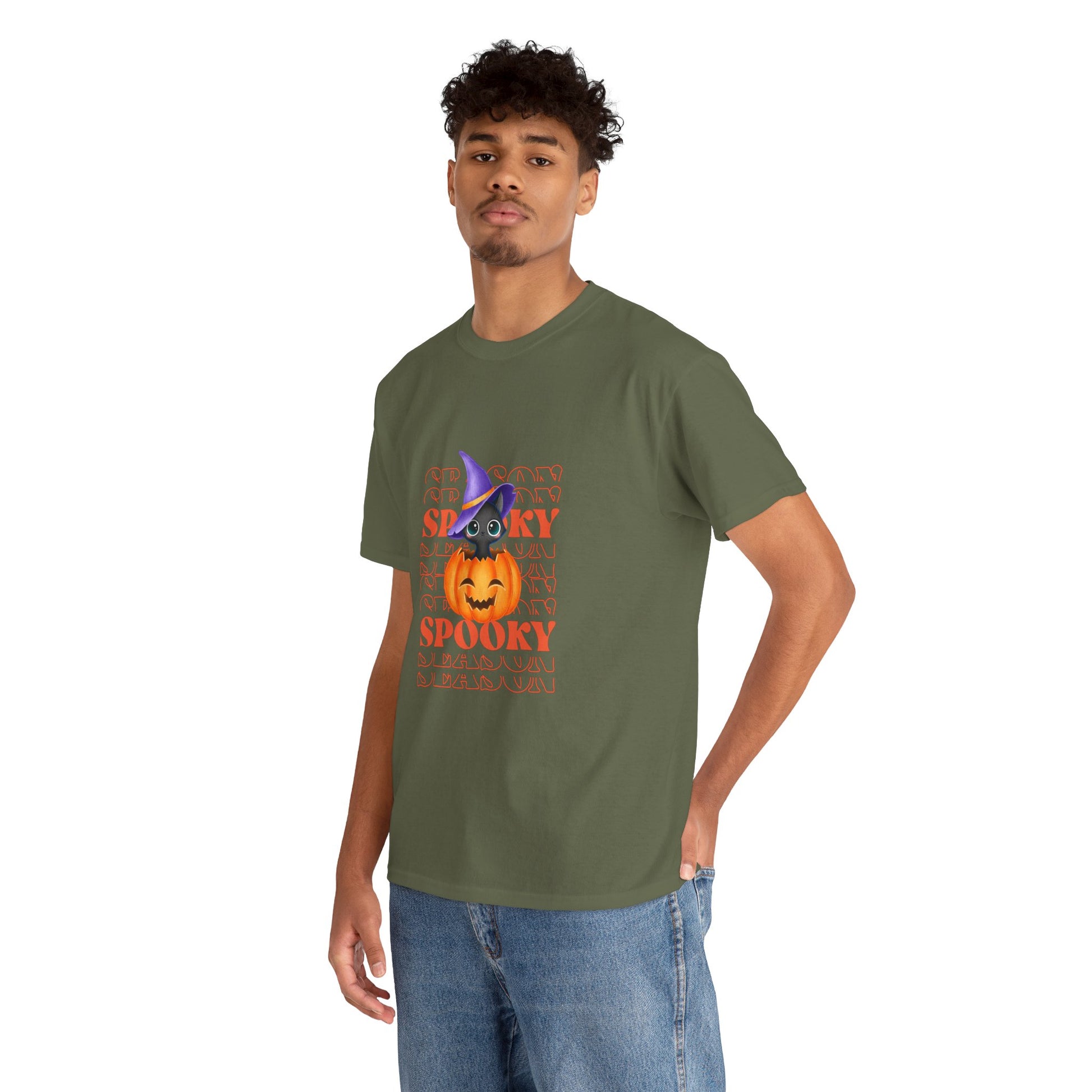 Embrace the spirit of the season with this Unisex Heavy Cotton Tee, designed to bring a touch of fun and festivity to your wardrobe. Featuring a vibrant Halloween-themed print, this shirt is perfect for those who love to celebrate in style. Its classic fit offers comfort for all-day wear, whether you're attending Halloween parties, trick-or-treating, or enjoying cozy nights with friends. Ideal for adults looking to express their love for the spooky season, this tee enhances any casual outfit. Wear it proudly during the autumn celebrations, Halloween events, or just for a fun day out!