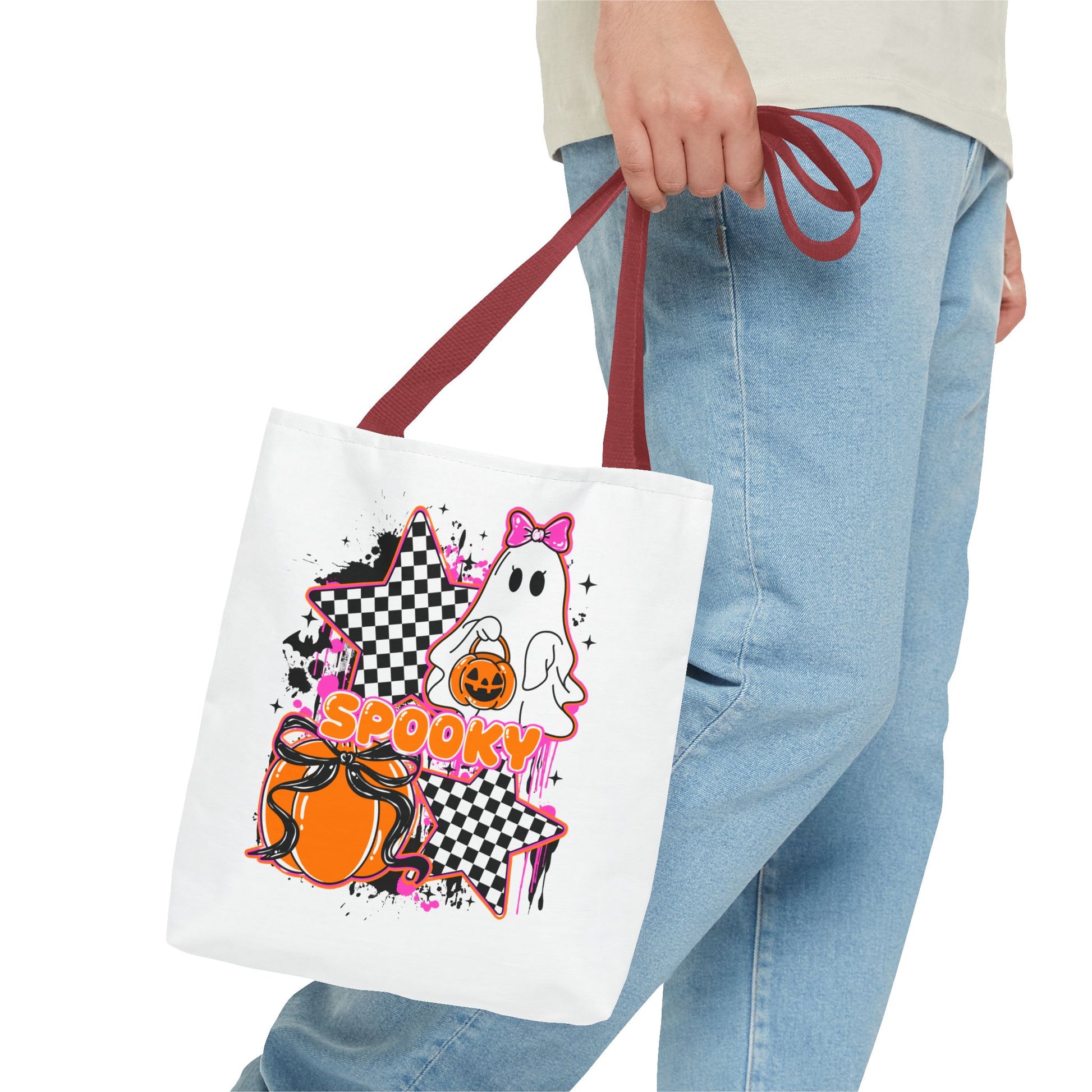 Spooky retro trick or treat tote bag perfect for Halloween enthusiasts. This durable and practical bag is ideal for carrying groceries, books, and everyday essentials. It is a must-have accessory for Halloween parties, trick or treating, and spooky season.